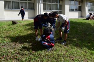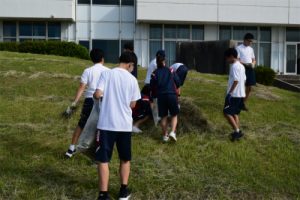 9月22日(月)に協働除草作業を行いました。秋らしさを感じる涼しい気候の中で行うことができました。生徒も自分たちの担当場所で一生懸命草を取りました。また、地域の方のお力添えもあり、校舎周辺がきれいになりました。