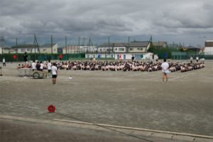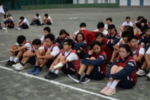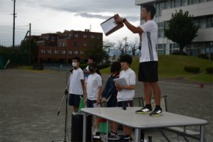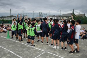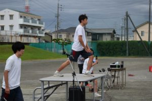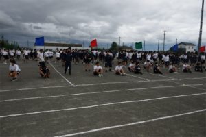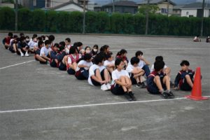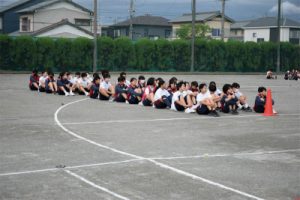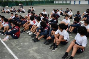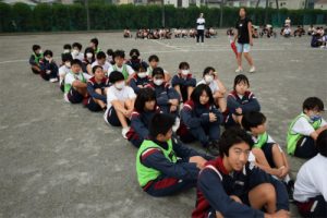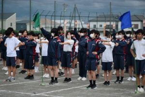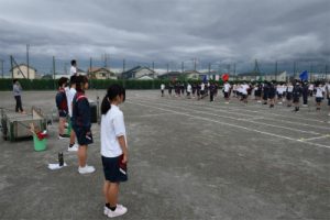 9/29(月)の1時間目に学校祭に向けて全校練習を行いました。開閉会式や準備体操、一部競技の招集と顔合わせをしました。素早く整列したリ、招集と退場をしたりする姿がありました。