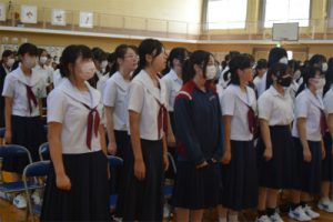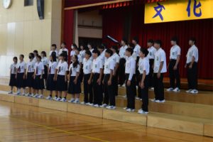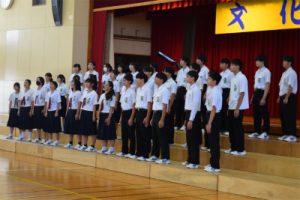 クラス合唱では、どのクラスも緊張した様子でしたが、曲の雰囲気や歌詞の意味を意識して歌いました。特に3年生は甲乙つけがたい、すばらしい合唱となりました。