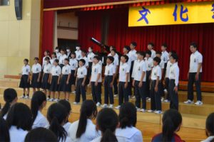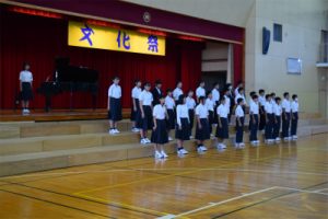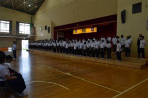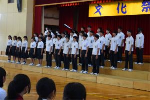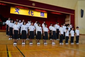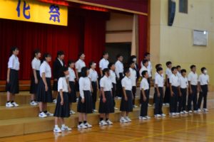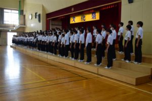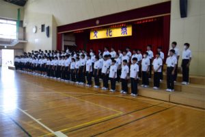 10/8(水)文化祭がありました。書写作品や美術作品・家庭科作品などの展示物の見学をしたり、吹奏楽部の演奏を鑑賞したりしました。また、全校生徒による校歌の合唱をしました。