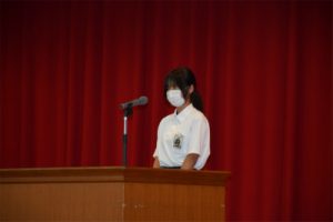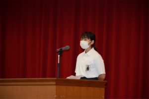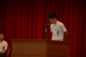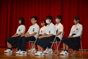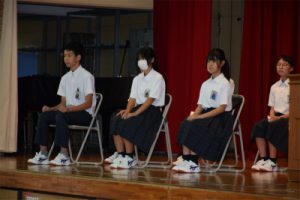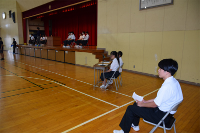 令和7年度後期生徒会役員選挙 立会演説会 全校の様子 2025年10月14日 10/10(金)令和7年度後期生徒会役員選挙・立会演説会がありました。今回は2年生が4名、1年生が名の合計6名が立候補しました。 立会演説会では、立候補者と推薦責任者が演説を堂々と行いました。 【演説の様子】
