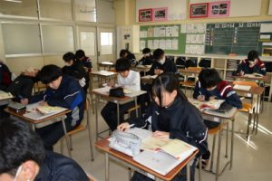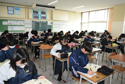 2年生【進路学習③】 2年生の様子 2026年01月22日 1/22(木)3回目の進路学習を行いました。本日は、卒業後の進路についてや高校の多様な学科・コース、全日制と定時制の違いなどについて詳しく学びました。 【授業の様子】