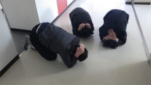 いつもと違う状況でしたが、生徒たちは放送や近くにいる先生の指示を聞いて、落ち着いて訓練に臨みました。