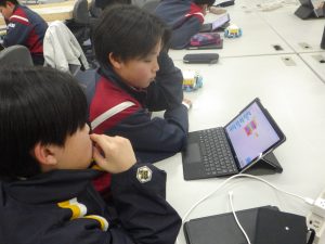 2月4日、講師の先生をお招きして、1年生を対象にプログラミング教室が催されました。