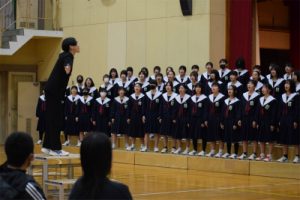 また、3年生から1,2年生に向けての合唱もありました。3年生の合唱はとても感動的なものでした。