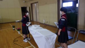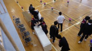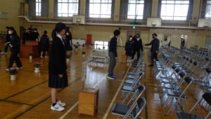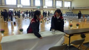 3/5(木)の5,6時間目で、卒業式の前日準備を行いました。1、2年生が3年生のために体育館や廊下などを隅々まで掃除をしたり、3年生の教室の装飾をしたリしました。