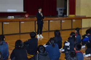 2年生の様子3/24(火)に学年最後となる学年集会を行いました。各クラスの代表が自分のクラスの良い点と改善する点について話をしました。また、学年の先生たち一人一人から話を聞きました。そして、学習面、生活面、進路についての話もありました。子どもたちは真剣な表情で話を聞いていました。