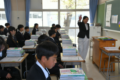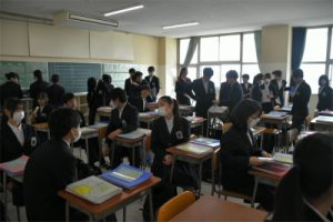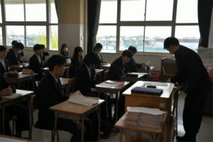 式後は、新クラスが発表され、新しい担任の先生や級友との出会いがありました。課題の提出やプリントの配付などを手伝う姿も見られました。