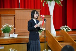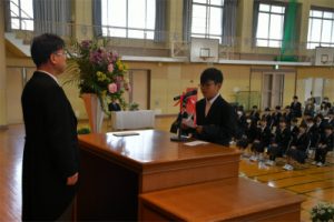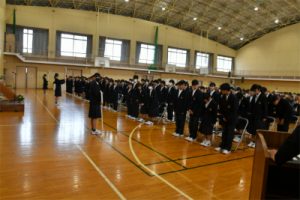 新しいの制服に身を包んだ新1年生は、緊張した表情で入学式に臨みました。また、2・3年生は進級して、今まで以上に頑張ろうという表情が見られました。